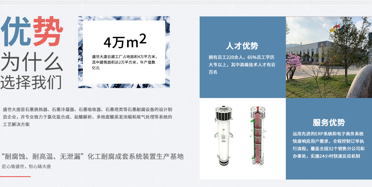 安徽盛世大唐化工設備集團有限公司-集無泄漏磁力泵、石墨設備和化工耐腐成套裝置的研發、生產、銷售和服務于一體,生產基地坐落于震驚中外的“皖南事變”發生地、歷史悠久的江南名鎮——安徽涇縣茂林,占地面積4萬...
